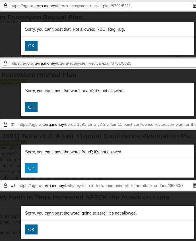 I did not want to raise such an important, explosive issue first on this forum. This forum is a centralized platform controlled by Terraform Labs. The moderators have been acting irrationally—even outright childishly. To understate the matter: They have been violating what I believe is their fiduciary duty to facilitate discussions without a bias favoring TFL and its proposals. And they are knowingly covering up for something bad. The Terra forum moderators are wearing their own mentes reae on their collective sleeve.