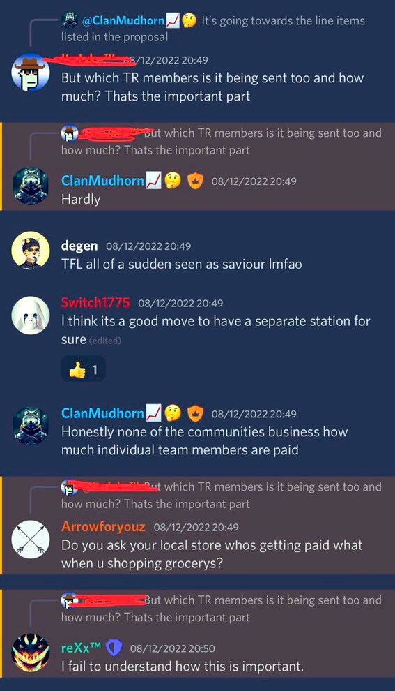 @raider7019 @Vegas @TerraRebels Would you please clarify if the $150k from this proposal will be spent on services unrelated to Rebel Station development such as Discord moderation?